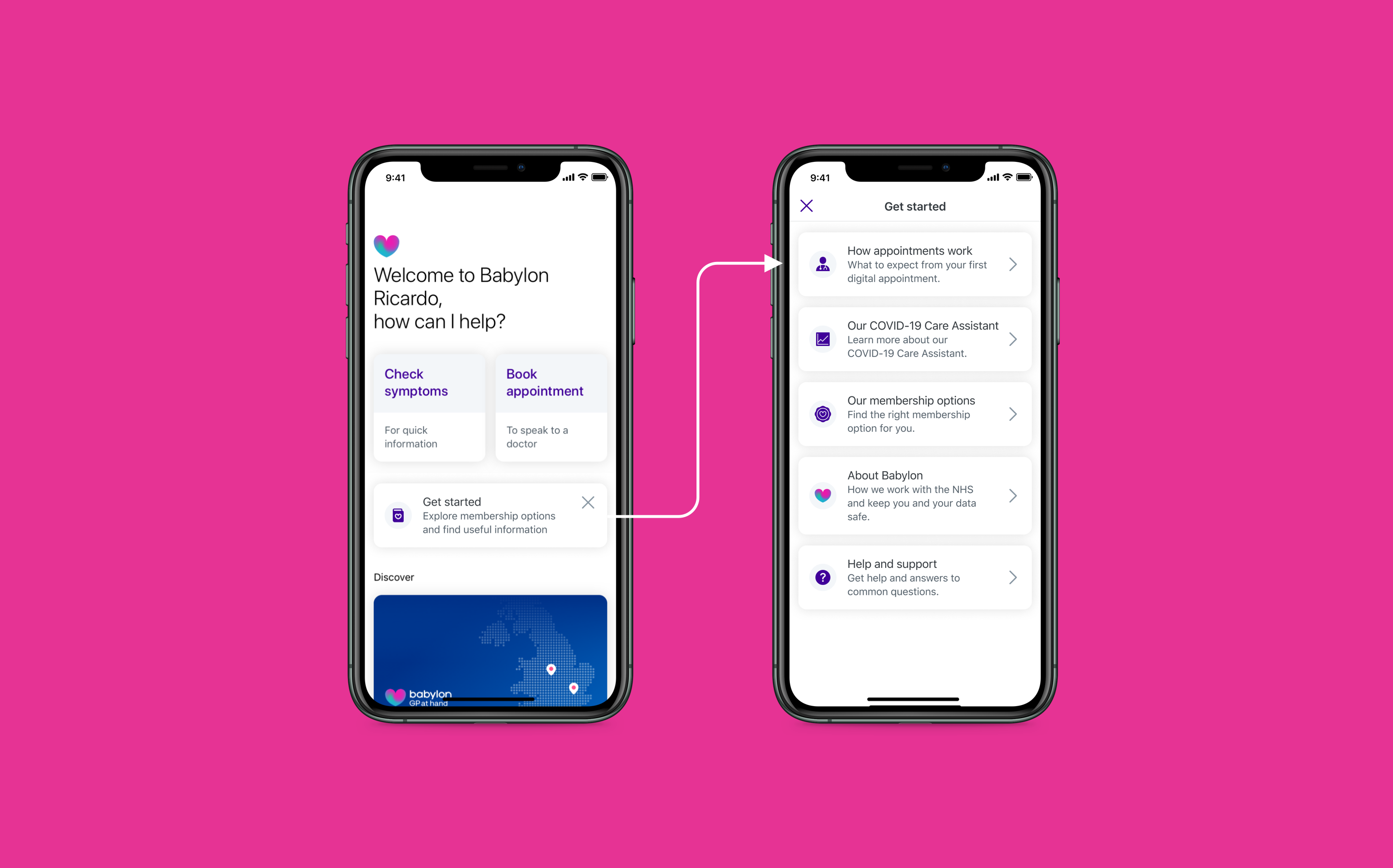 Babylon Health – Membership guide (Left: iteration 1; Right: final design)