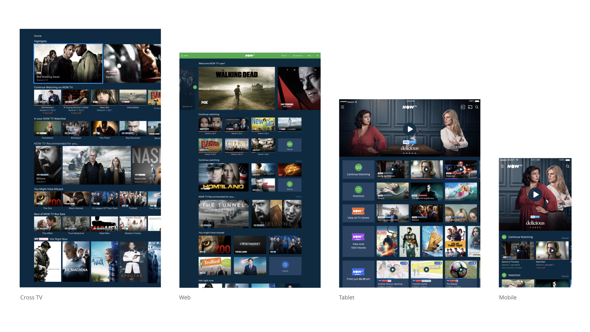 Creating a seamless and consistent interaction + visual experience across all NOW TV platforms.