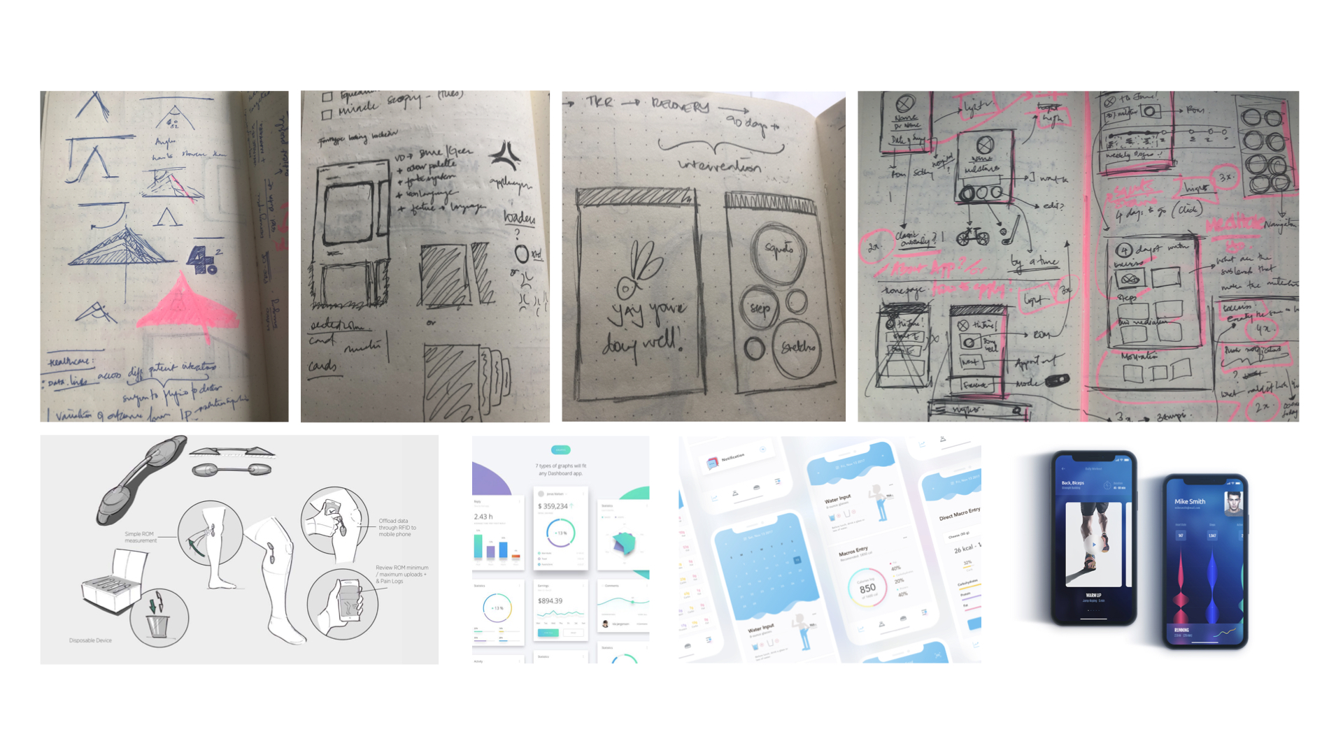 With the gathered insights and requirements, a concept proposition was shared with the clients with all the learnings gathered over the duration of the project. The final showcase included the tangible product design of the wearable with its functional parts, service map recommendation, patient side and professional side app direction and requirement recommendations, commercial map model and finally product roadmap for phase 2.