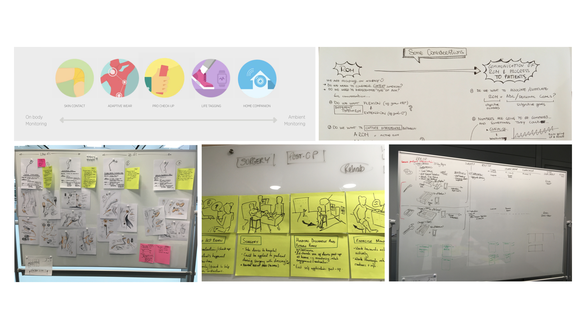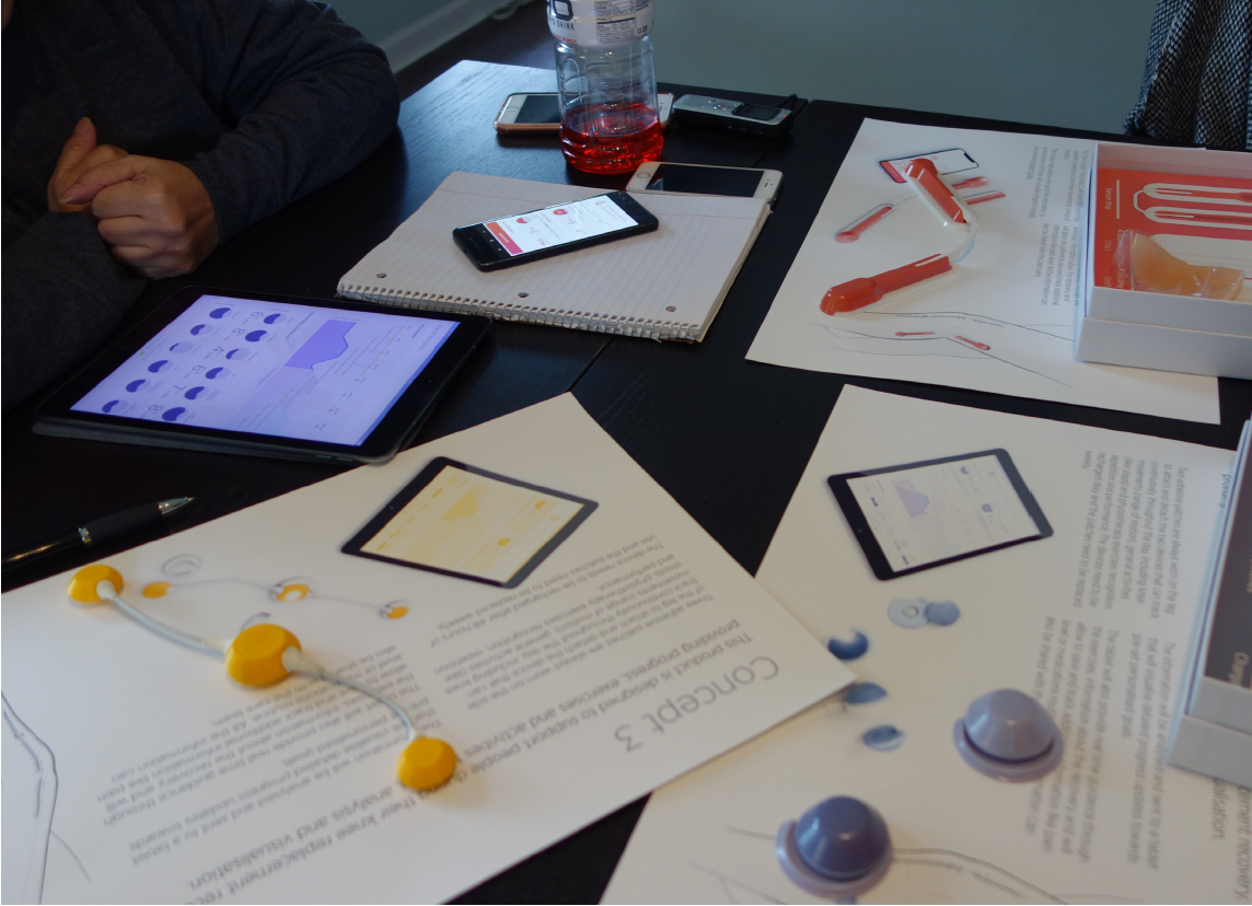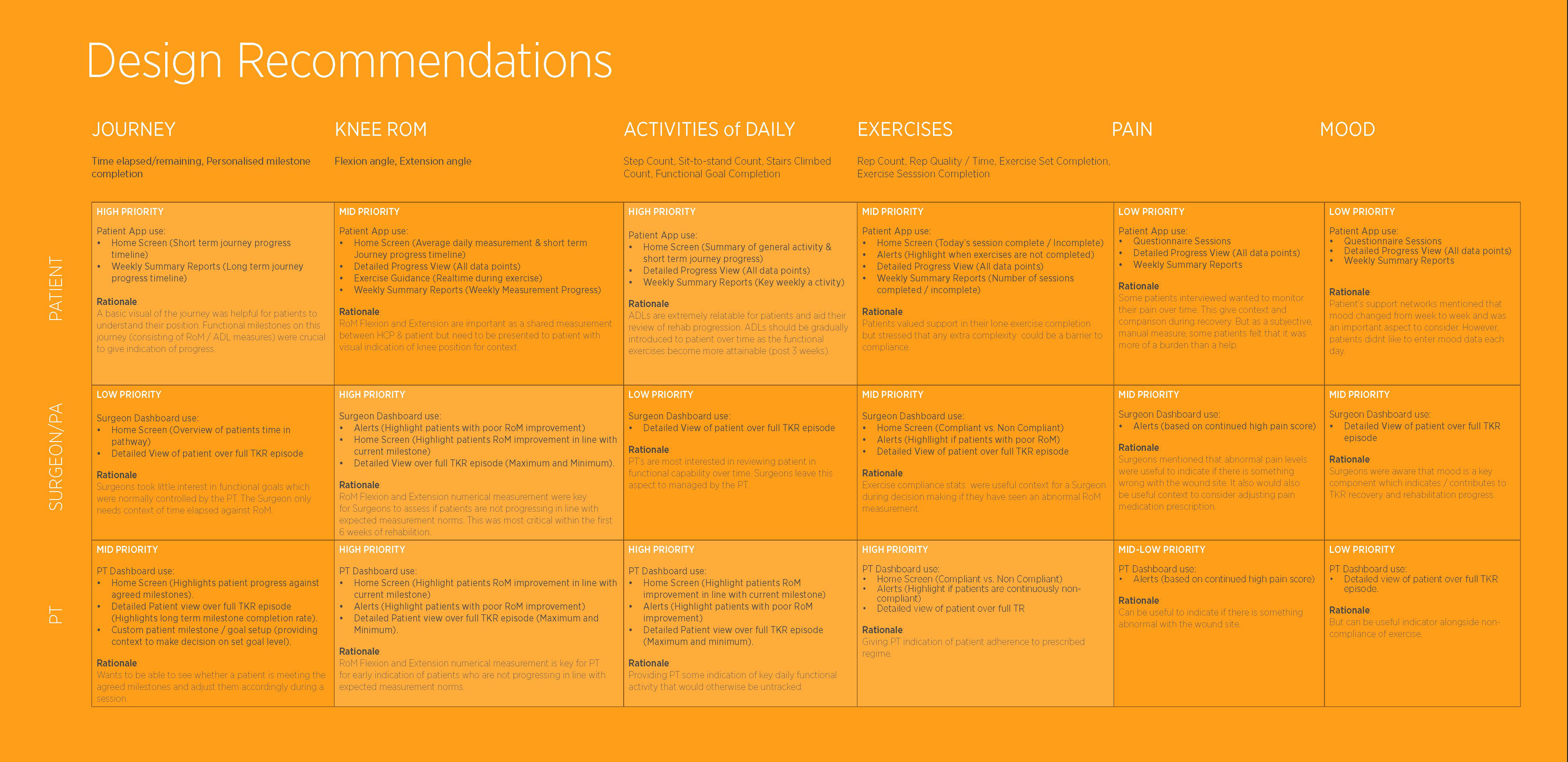 Using a variety of research methods likes in-home interviews with patients, interviews and workshops with healthcare professionals (surgeons, physical therapists, etc.), an overview of key recurring themes and pain points were highlighted. This helped synthesise a series of insights that guided the conceptualisation and service map.