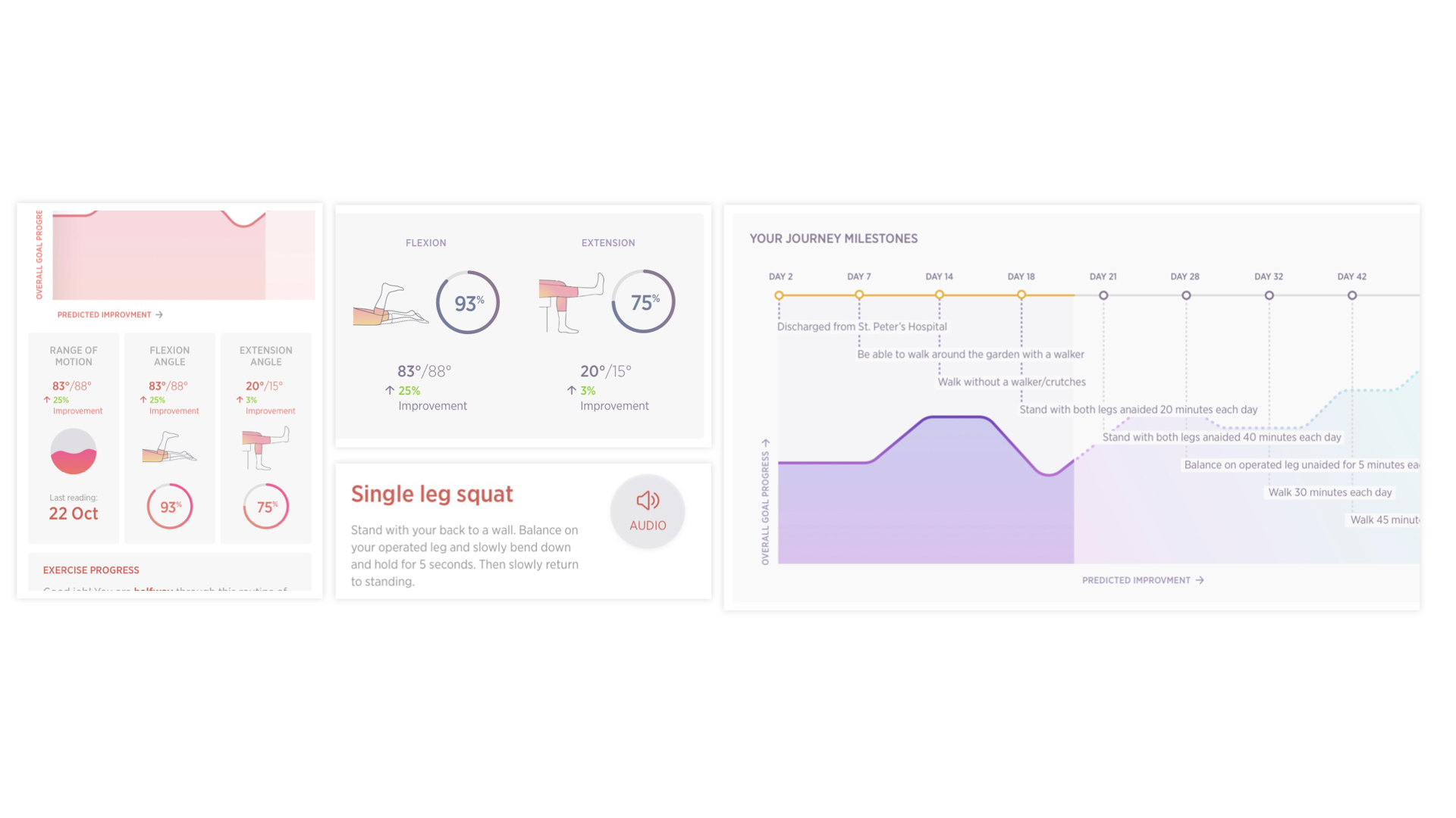 To provide visual progress identification & quantified prediction concepts to improve patient motivation and engagement in the context of a total knee replacement recovery (TKR) regime.